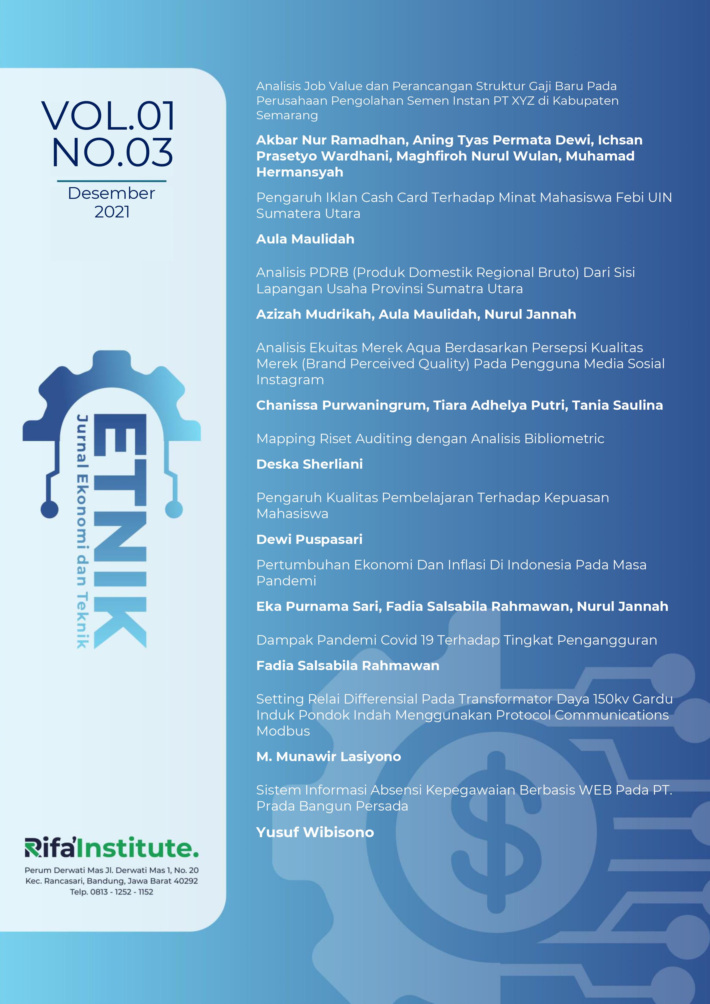 ETNIK : Jurnal Ekonomi dan Teknik provides a means for ongoing discussion of the relevant issues that fall within the focus and scope of the journal that can be examined empirically. This journal publishes research articles in the Economic History, Applied Economics, Business and Finance, Environmental and Ecological Economics, Islamic Economics, Health Economics, Fiscal Economics, Monetary Economics, Political Economics, Civil Engineering,Electrical Engineering, Informatics Engineering,Craft Engineering,Architecture, Industrial Engineering, Mechanical Engineering, Engineering Education, and, Other related engineering fields. Articles published are the results of research, studies or scientific studies on important and current issues or scientific book reviews.